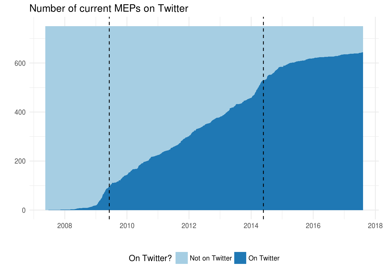 This is the first in a series of posts on how members of the European Parliament (MEPs) appear on Twitter. This first post introduces the EP twittersphere, outlines limitations to the analysis, and points at some broad trends. The following posts will focus on specific aspects.