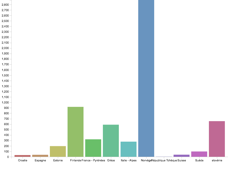 Nombre de têtes de bétail tuées par des ours, pour lesquels une indemnisation a été octroyée (moyenne 2012-2016) (source : Parlement européen, commission de l’agriculture et du développement rural)