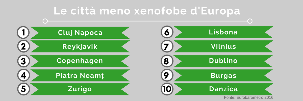Ogni tre anni Eurobarometro rileva l’opinione degli abitanti di un’ottantina di città sparsi in tutta Europa: nell’ultimo sondaggio, condotto nel 2015, più del 76% degli intervistati pensava che la presenza di stranieri fosse un bene per il posto in cui vivevano.