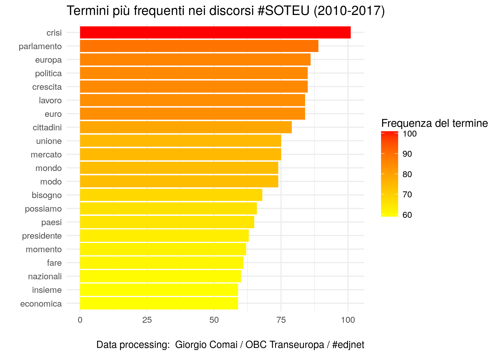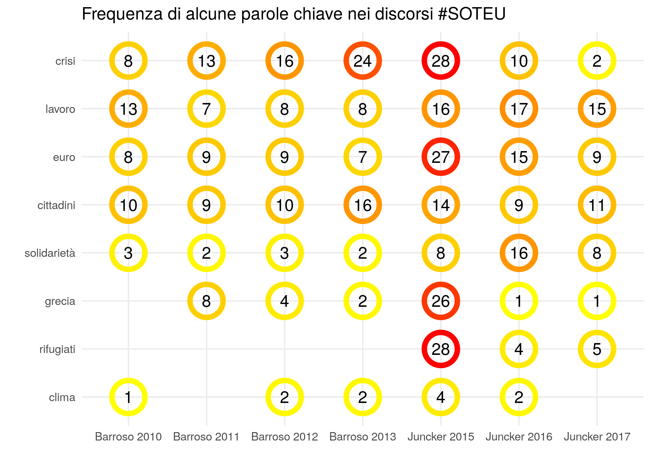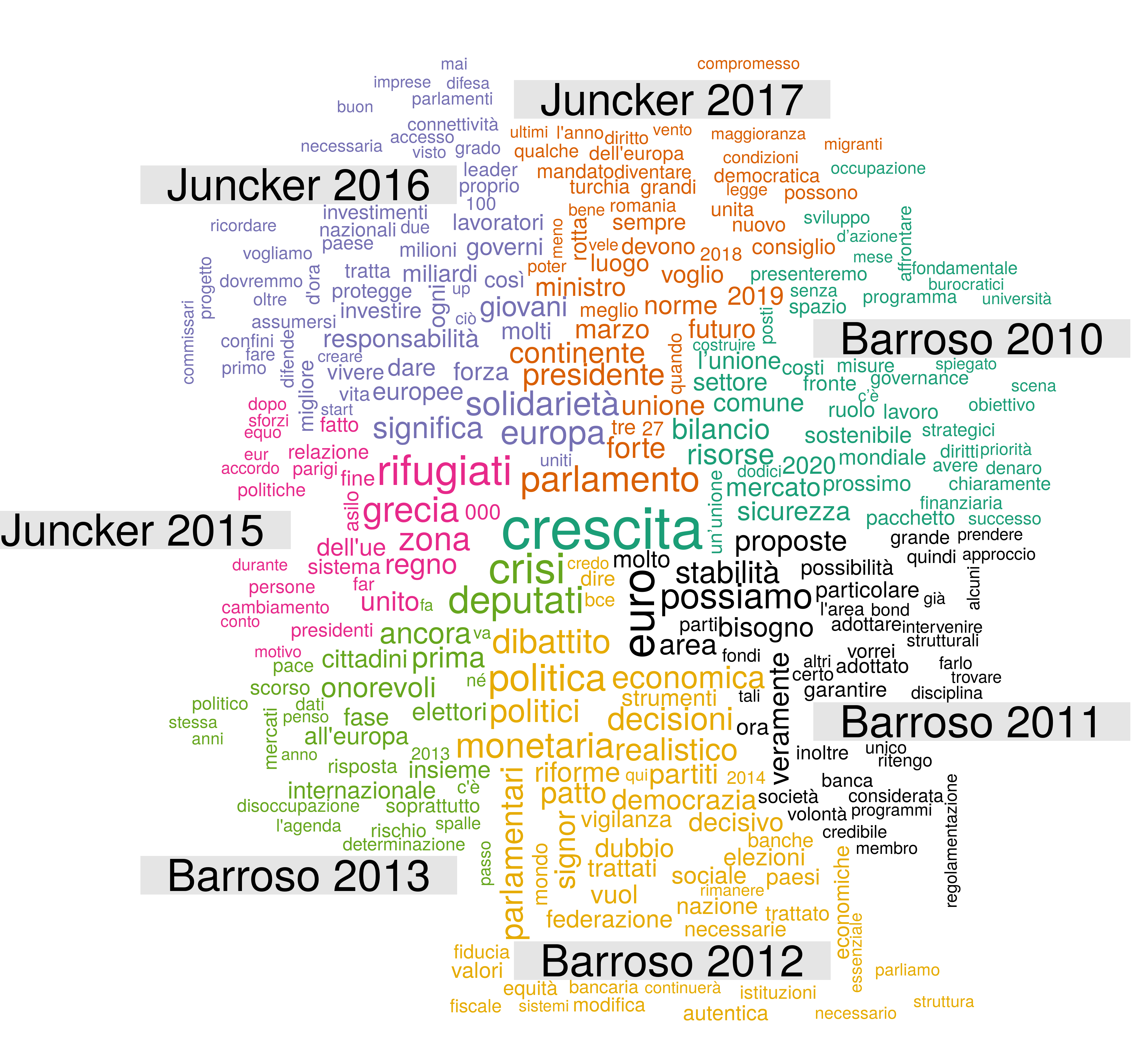 E’ un’occasione simile ai discorsi di indirizzo politico generale che pronunciano i singoli capi di governo: proprio per questo è interessante analizzare più nel dettaglio il linguaggio e le parole che vengono usate nei discorsi sullo Stato dell’Unione. Sono parole che segnalano i concetti e i temi che dominano una determinata fase, e ciò su cui l’UE si concentra.