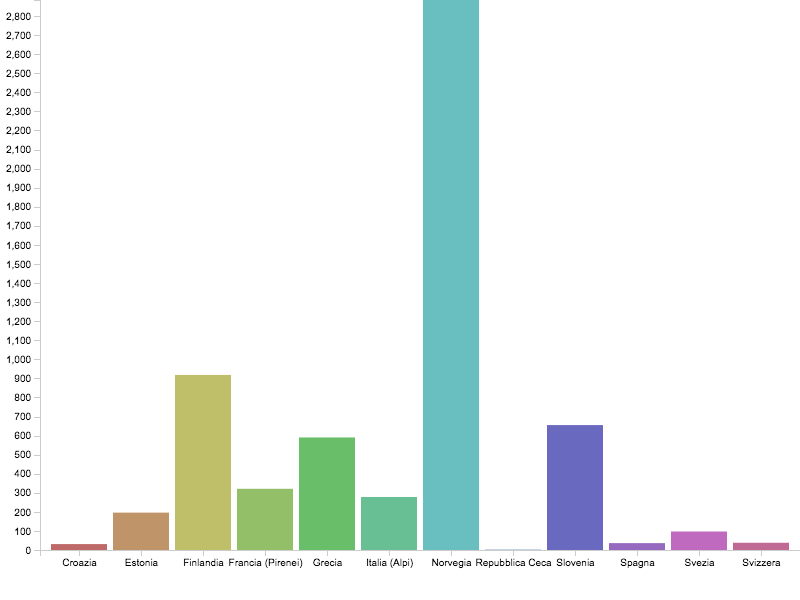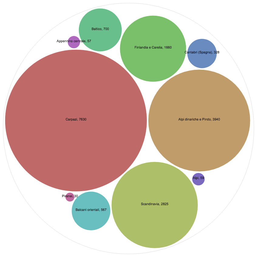 Popolazione di orsi bruni in Europa, stime 2012-2016 (fonte: Parlamento europeo, Commissione agricoltura e sviluppo rurale).